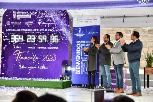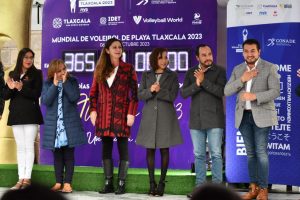 Huamantla, Tlax.- El presidente municipal de Huamantla, Salvador Santos Cedillo, participó en la ceremonia de encendido del reloj con la cuenta regresiva de 365 días para el inicio del Mundial de Voleibol de Playa Tlaxcala 2023.