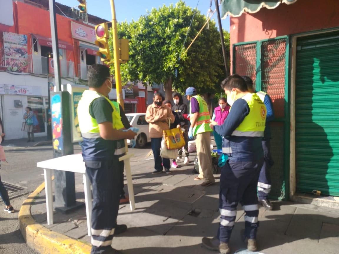 Por ello la Dirección de Servicios Públicos y Protección Civil Municipal y Estatal continúa con la implementación de filtros de higiene para la distribución de gel antibacterial, cubrebocas y la toma de temperatura en favor del bienestar de la población.