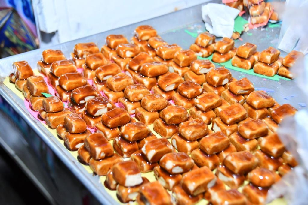 Afuera de los templos, los muéganos huamantlecos, atractivo turístico del municipio de Huamantla, además de patrimonio cultural y gastronómico de Tlaxcala, sobresalían entre decenas de antojitos mexicanos, colocándose como los favoritos de chicos y grandes.