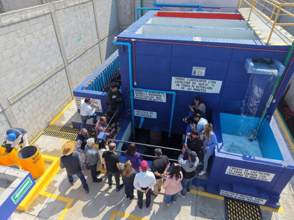 Como parte central de la visita, el biólogo Guillermo Juárez Rodríguez, responsable del diseño del sistema de saneamiento, explicó el funcionamiento de la planta de tratamiento de aguas residuales, cuyo objetivo es retirar los colorantes y sólidos generados durante el proceso textil.