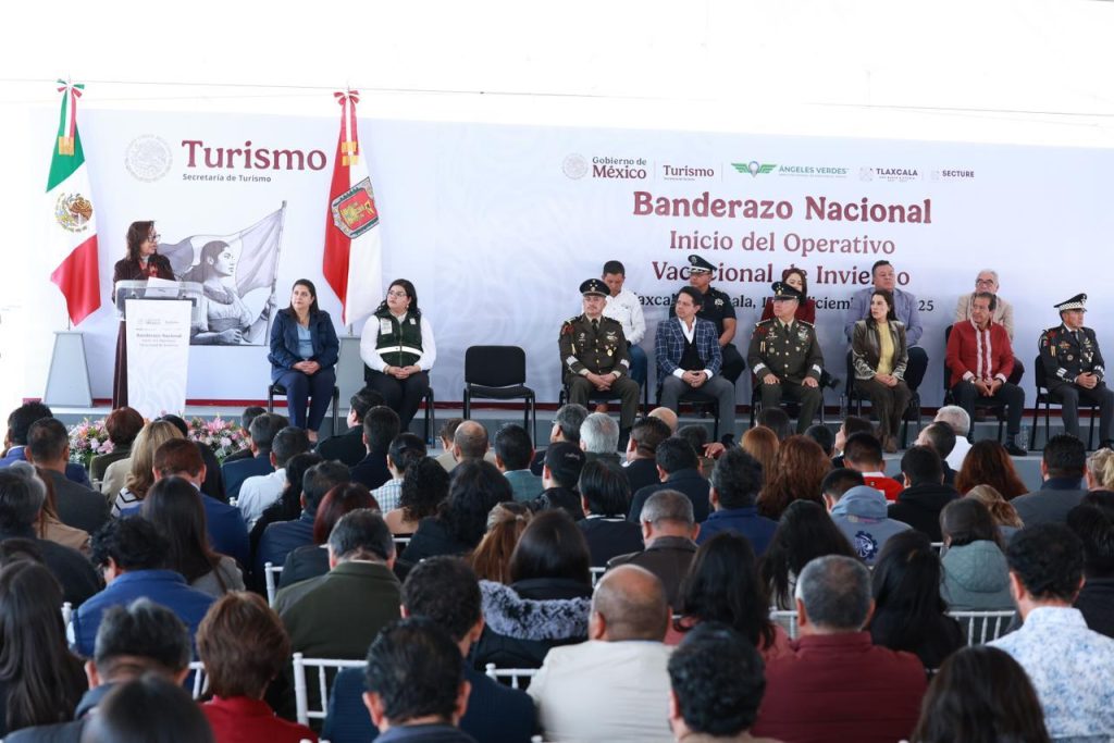 La gobernadora Lorena Cuéllar Cisneros, acompañada por la secretaria de Turismo del Gobierno de México, Josefina Rodríguez Zamora, encabezó en Tlaxcala el arranque nacional del Operativo Vacacional de Invierno 2025 -que se desarrollará del 17 de diciembre al 11 de enero de 2026-, como parte de la estrategia federal orientada a proteger la vida y la integridad de las personas que se desplazan por el país durante la temporada decembrina.