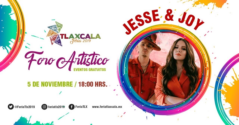 Tlaxcala, Tlax.- El talentoso dúo de pop mexicano “Jesse y Joy” se presentarán de forma gratuita este martes 04 de noviembre, en el Foro del Artista de “Tlaxcala Feria 2019”, para complacer al público con las canciones que los han llevado a consagrarse como uno de los mejores grupos del momento.