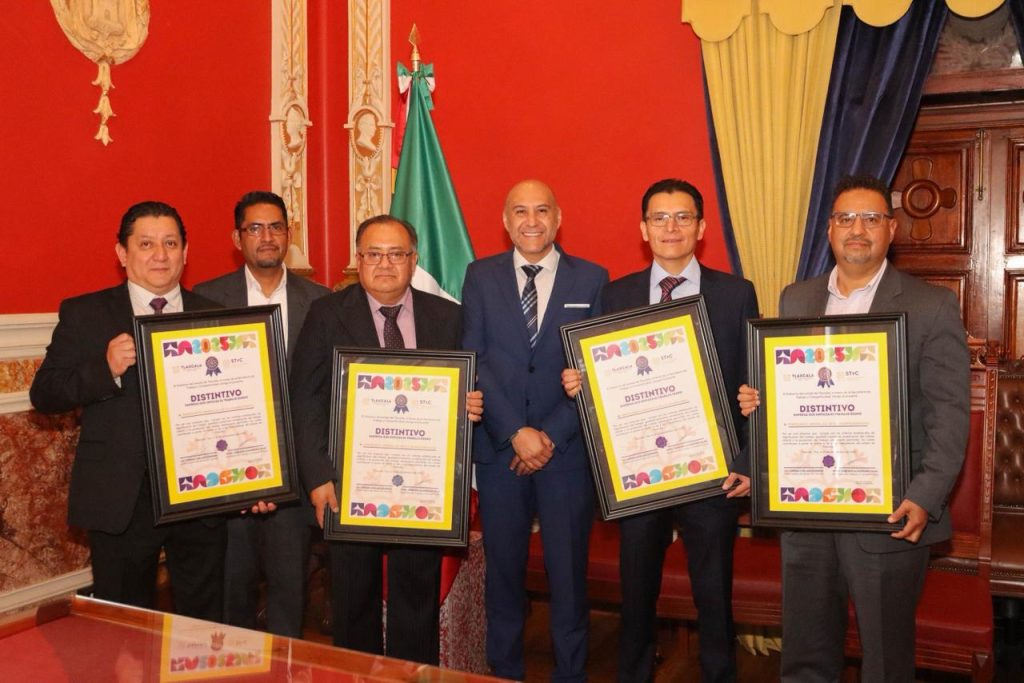 En el Salón Rojo de Palacio de Gobierno, el titular de la STyC, Noé Altamirano Islas, en representación de la gobernadora Lorena Cuéllar, destacó que este distintivo es símbolo de una convicción compartida: “Que el bienestar económico y social solo es posible si se pone a la persona en el centro”.