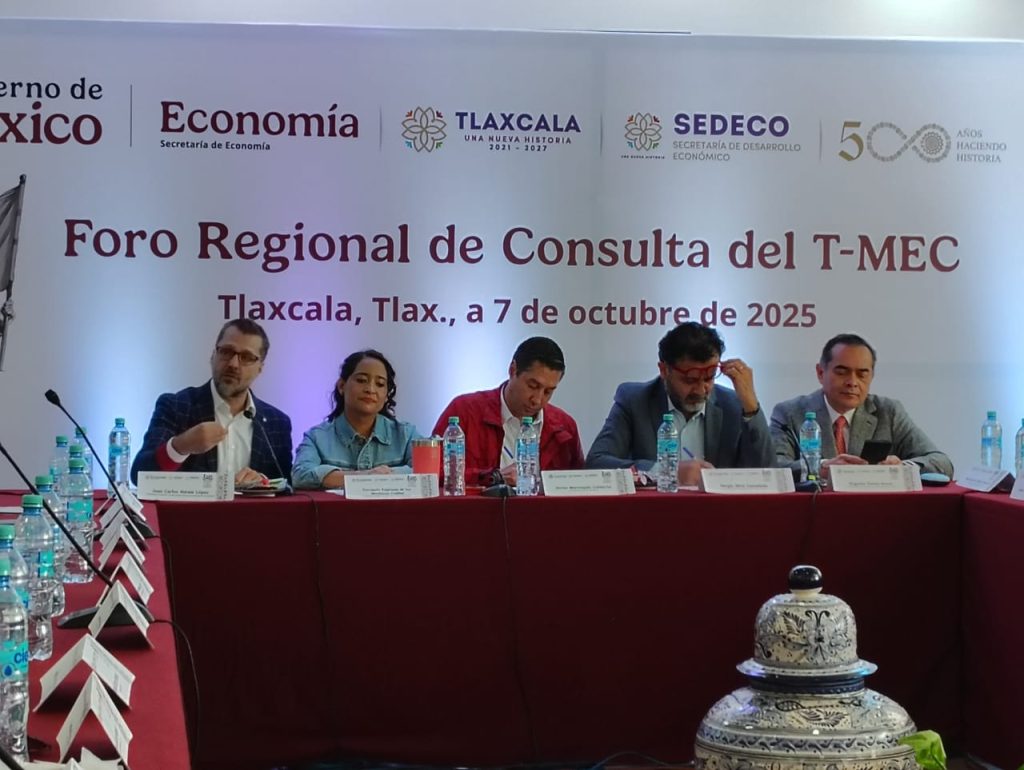 Tlaxcala se sumó al esfuerzo nacional para fortalecer la posición de México en la revisión del Tratado entre México, Estados Unidos y Canadá (T-MEC), al realizar el Foro Regional de Consulta, un espacio de diálogo convocado por la Secretaría de Desarrollo Económico (Sedeco) en coordinación con la Secretaría de Economía federal, donde se reunieron autoridades y representantes de los principales sectores productivos para construir una agenda económica con enfoque regional y de largo plazo.