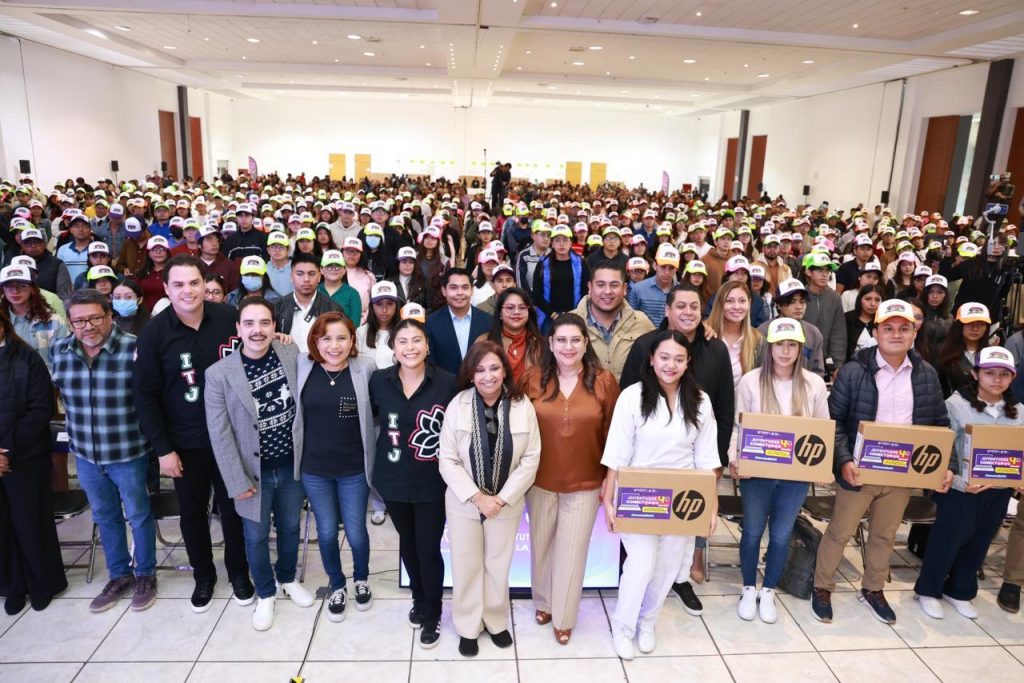 La gobernadora Lorena Cuéllar Cisneros encabezó la entrega de mil 250 computadoras portátiles, como parte del programa Juventudes Conectadas, en su cuarta edición, lo que les permitirá contar con una herramienta fundamental para continuar con sus estudios.
