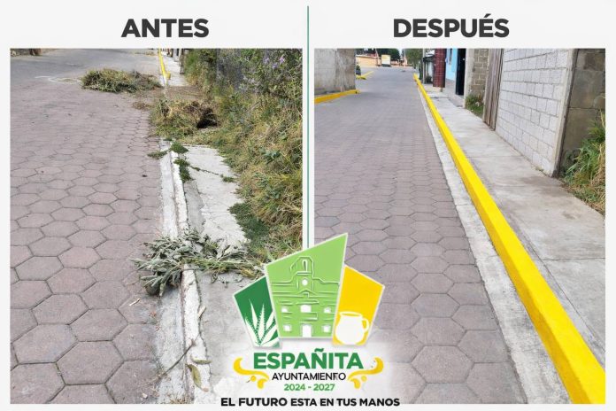 Españita, Tlax. – A través de sus redes sociales, el Ayuntamiento de Españita comparte con la ciudadanía el mejoramiento constante de la imagen urbana del municipio, lo cual ha sido posible a las acciones de limpieza y mantenimiento en los espacios públicos realizadas con el apoyo del programa de empleo temporal.