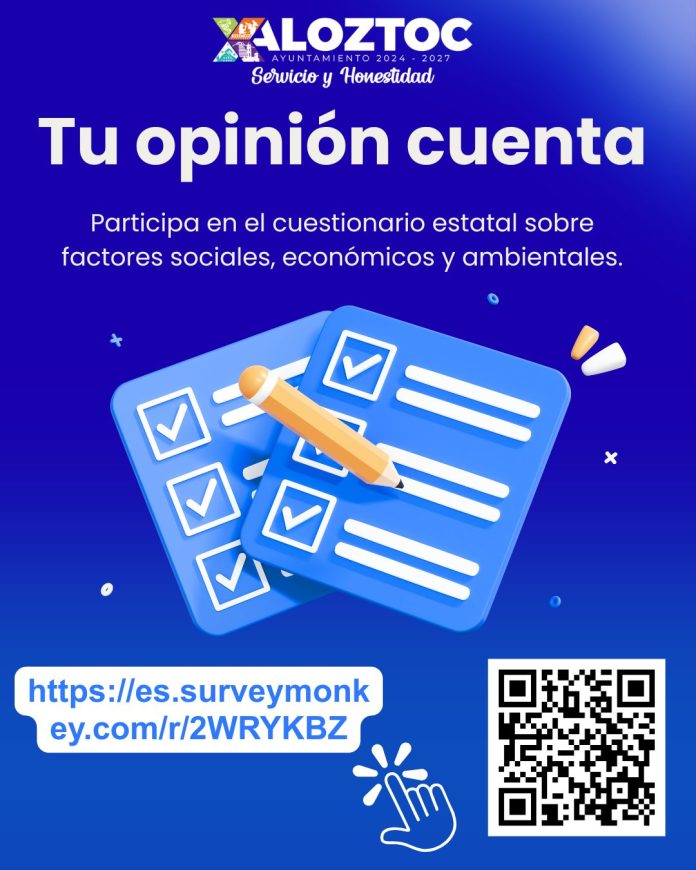 El Ayuntamiento de Xaloztoc hace un llamado a la población a sumarse a este ejercicio de consulta, recordando que la voz de cada ciudadano cuenta para construir un futuro más justo, equitativo y sustentable. Las y los interesados pueden acceder al formulario mediante el siguiente enlace: https://es.surveymonkey.com/r/2WRYKBZ
